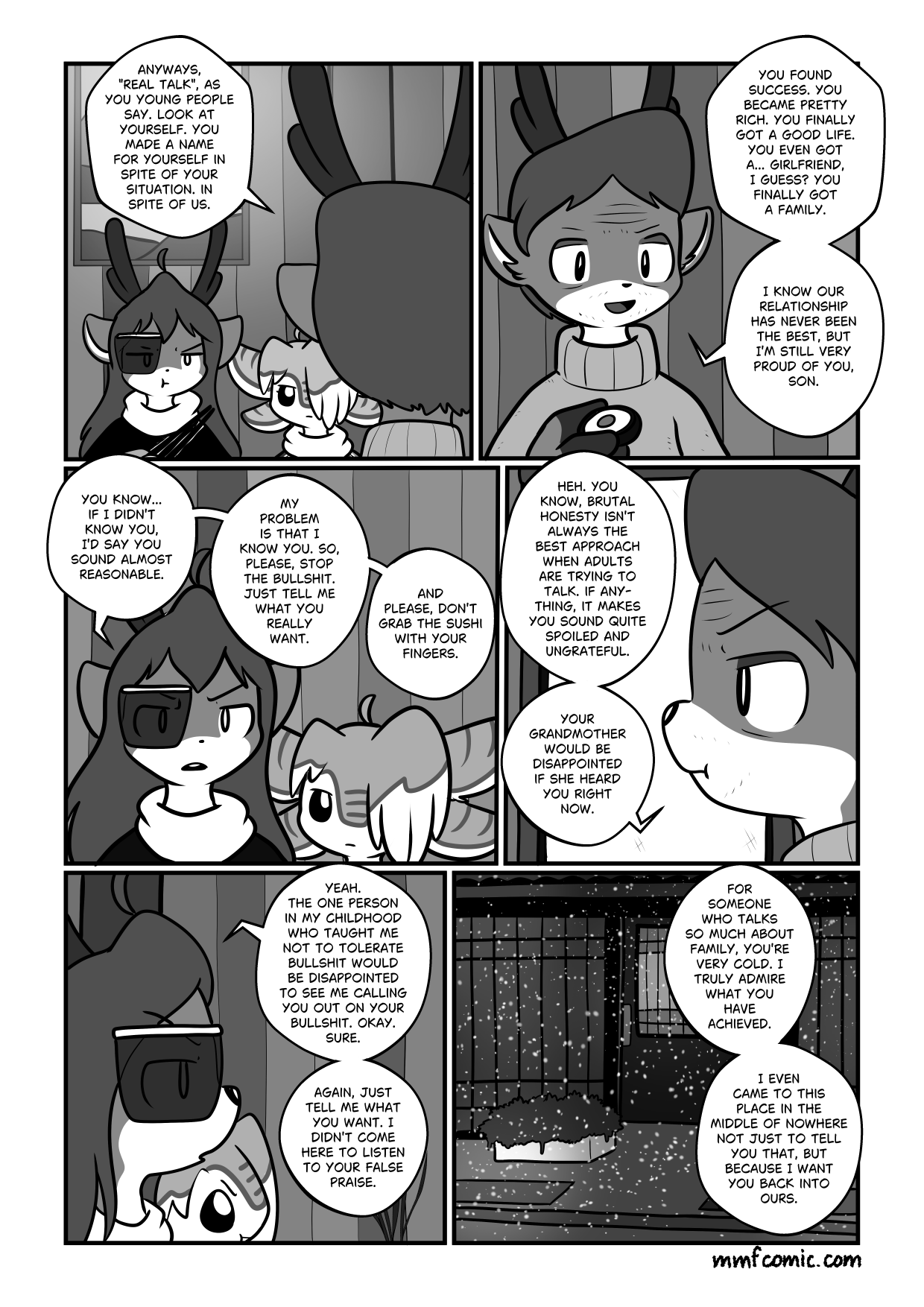 There's a backshot of Daniel's father's head. He is saying "Anyways, 'Real Talk' as you young people say. Look at yourself. You made a name for yourself in spite of your situation. In spite of us."